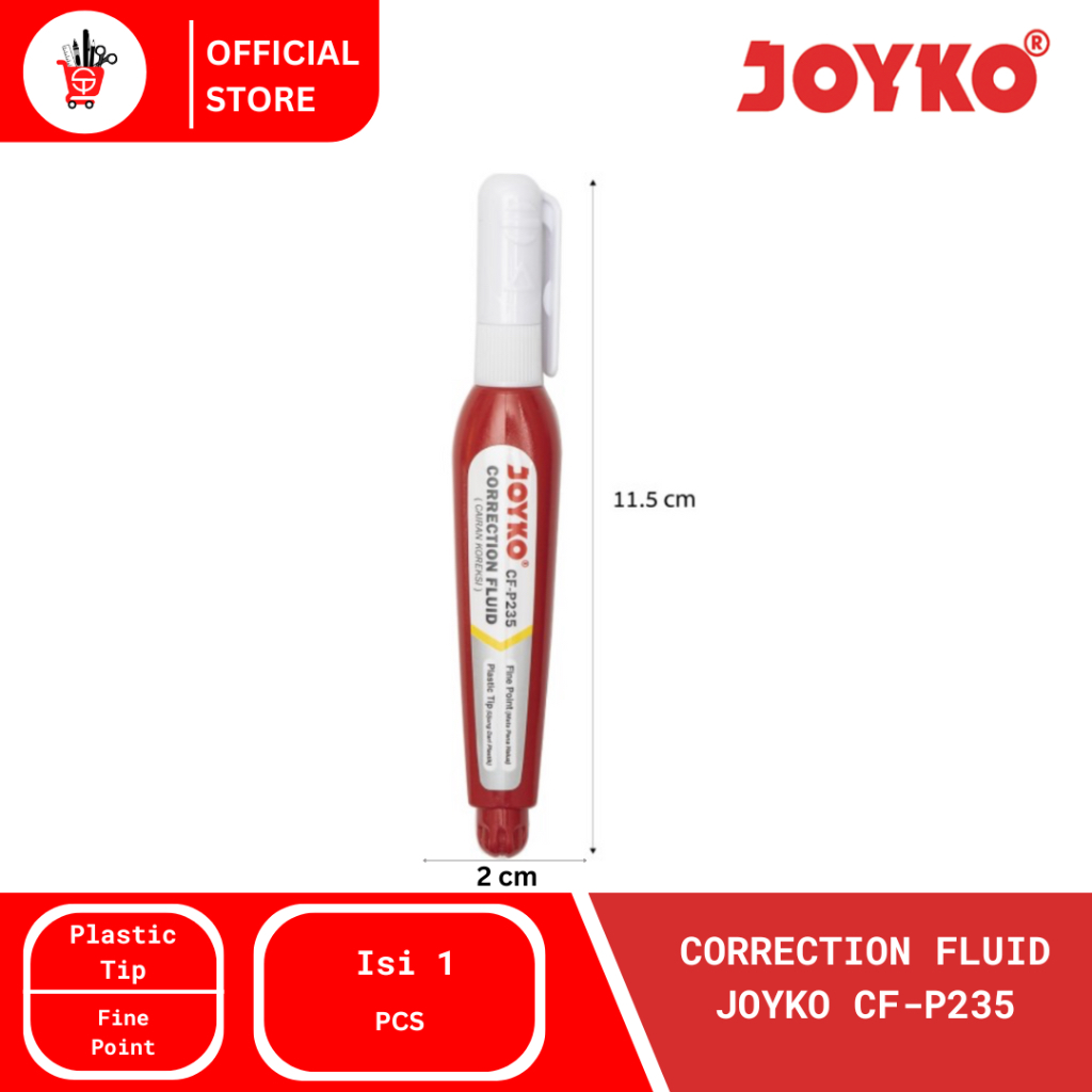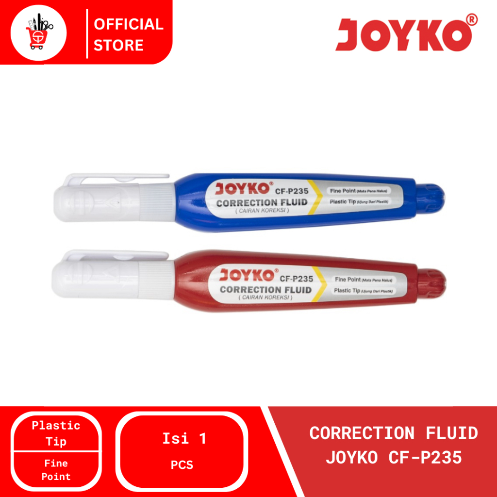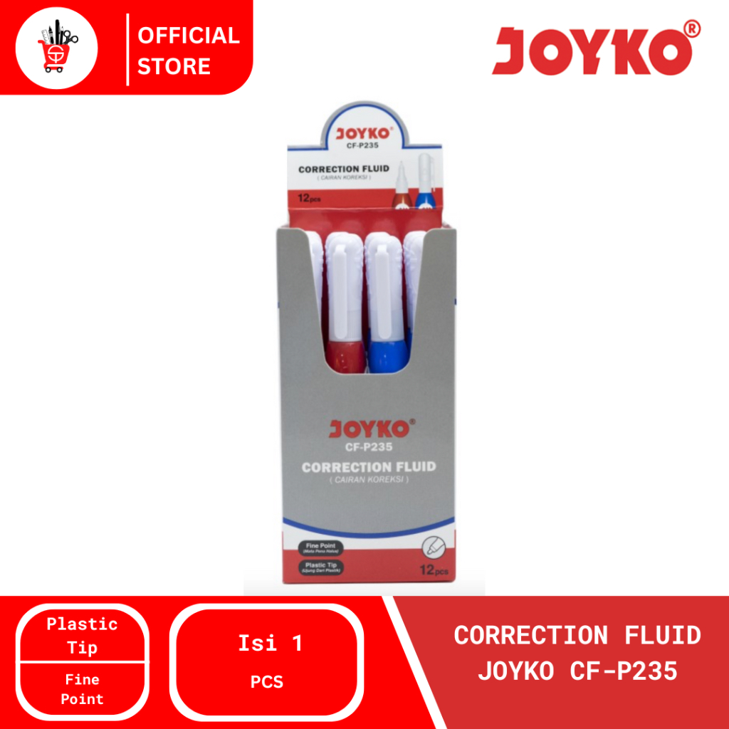 Correction Fluid Joyko CF-P235 adalah cairan koreksi berkualitas tinggi yang dirancang untuk memperbaiki kesalahan tulisan dengan mudah dan rapi. Dilengkapi dengan ujung plastik halus (fine point), produk ini memastikan aplikasi cairan yang presisi tanpa berantakan.